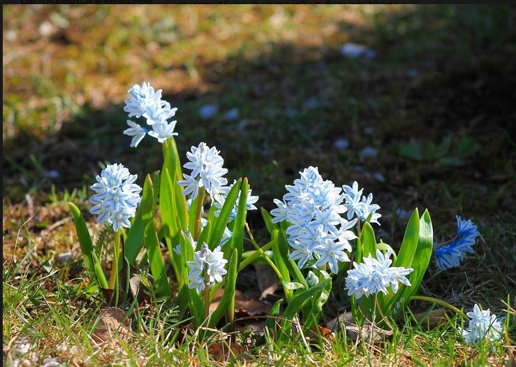 Цветение длится всего от полутора до трёх недель. Из одной зрелой луковки одновременно выстреливают до четырёх цветоносов. Каждый стебель вытягивается примерно до 15 см и несёт кисть из 12–30 почти снежных бутонов, центр каждого лепестка подчёркнут тонкой небесной жилкой. Листья сочные, узкие, линейные: высота около 15 см, ширина не превышает 1 см. Если в первый год гиацинтовидная пушкиния показала себя скромно, не спешите огорчаться — ко второму сезону первоцвет раскроет всю свою красоту.