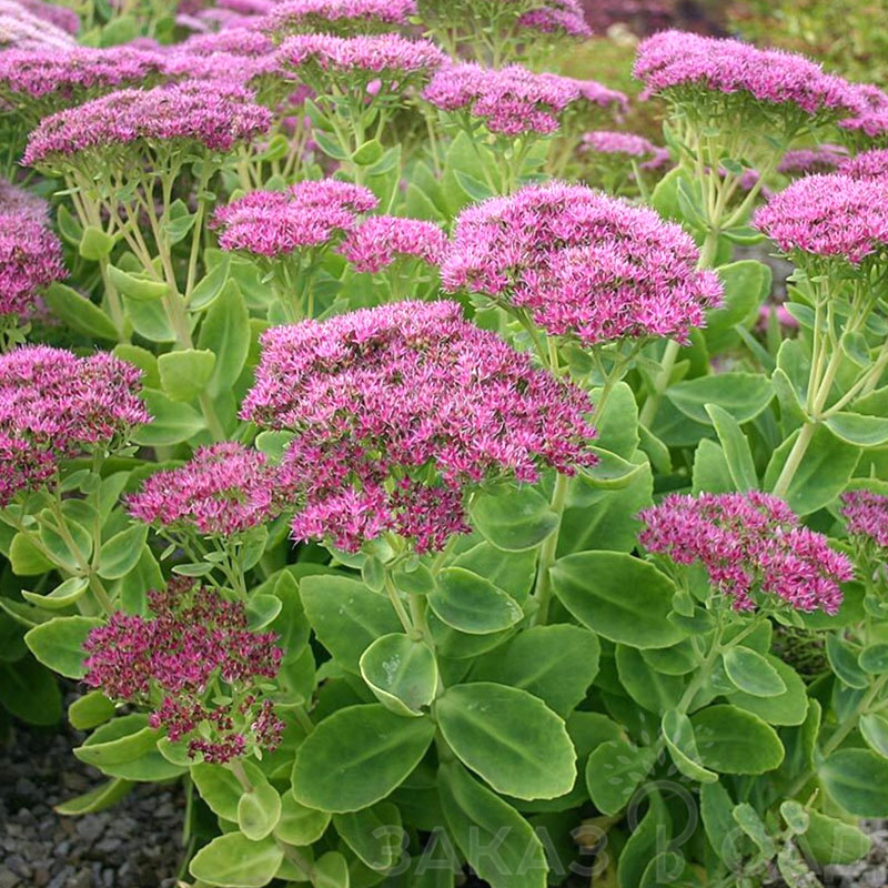 Очиток видный 'Бриллиант' (Sedum spectabile 'Brilliant') — это многолетнее травянистое растение, которое станет настоящим украшением вашего сада. Его крупные, мясистые листья образуют плотные розетки, а в период цветения растение покрывается обильными соцветиями ярко-розового цвета, которые привлекают пчел и бабочек.