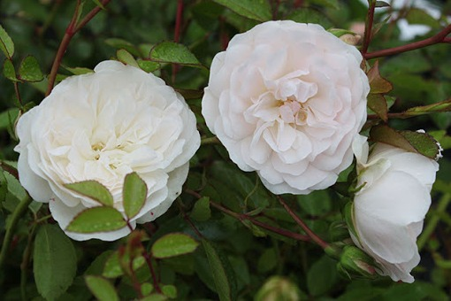 - Цветы: Нежные белые цветки с легким розовым оттенком, собранные в крупные соцветия.