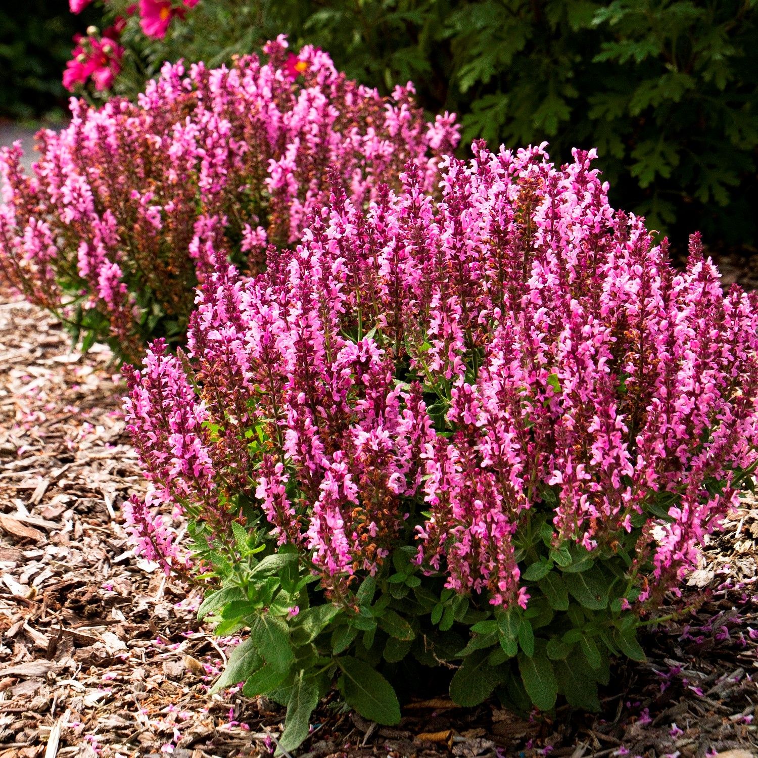 Шалфей дубравный "Розовая королева" (Salvia nemorosa 'Rose Queen') – это изысканное многолетнее растение, которое станет настоящим украшением вашего сада. Его нежные розовые соцветия, собранные в плотные колосовидные кисти, привлекают внимание и создают атмосферу уюта и романтики.